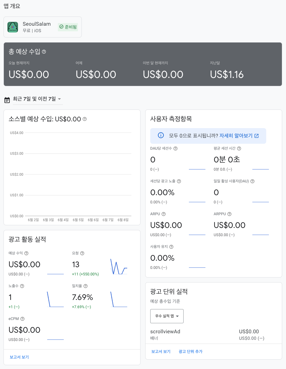 앱의 수익화는 앱을 유지하기 위해 정말 중요한 부분이라고 생각한다. 그래서 SeoulSalam에도 Google Admob을 이용해 광고를 게재중이었다