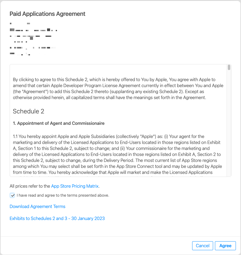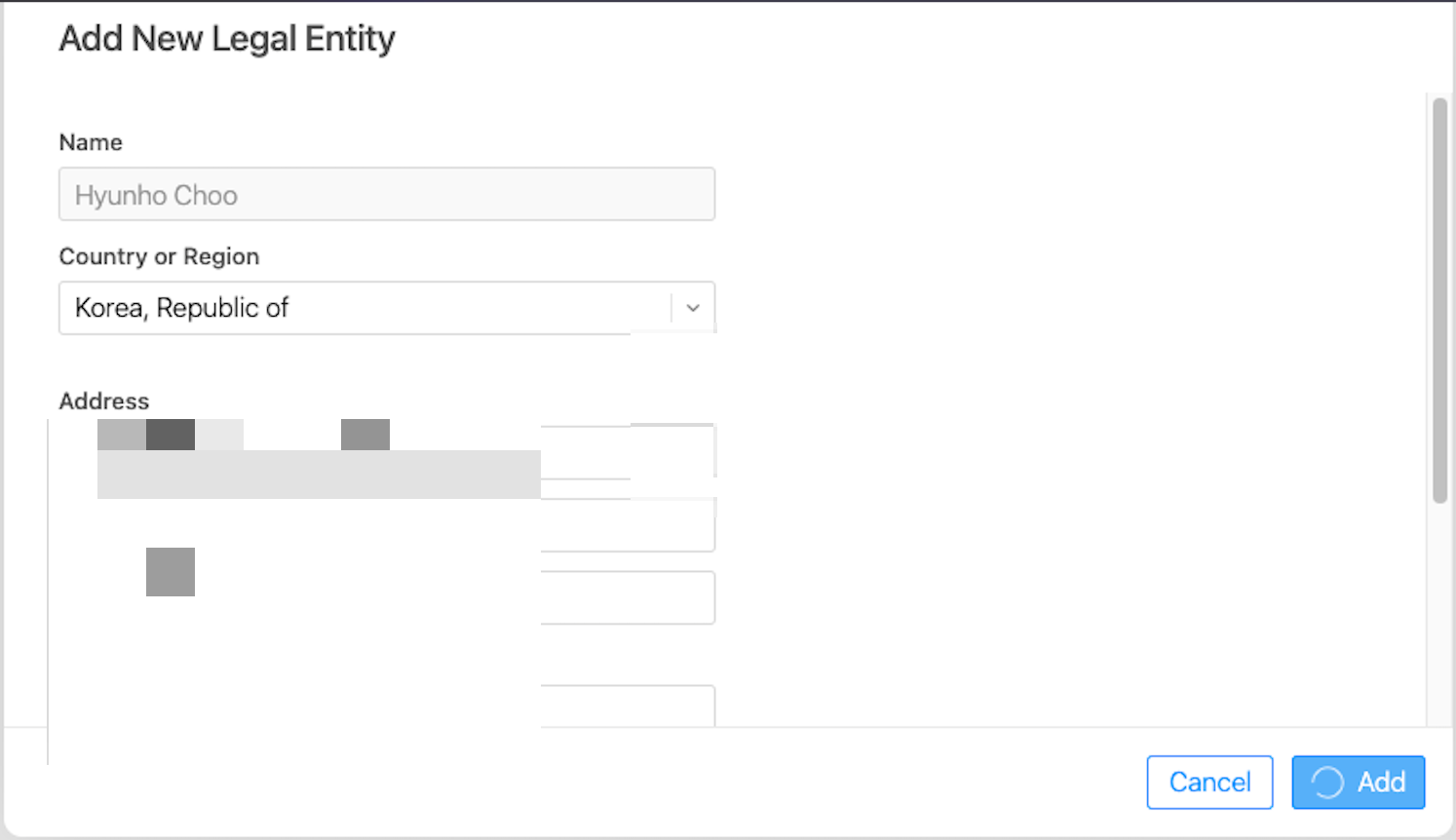 AppstoreConnects의 Agreements, Tax, Banking에서 Agreements Add가 안될 때 해결방법